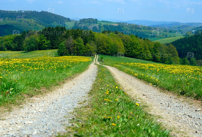 Сельская дорога под яркий солнечный голубое небо