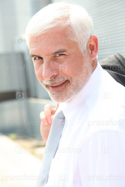 Портрет старших бизнесмена, стоя на открытом воздухе