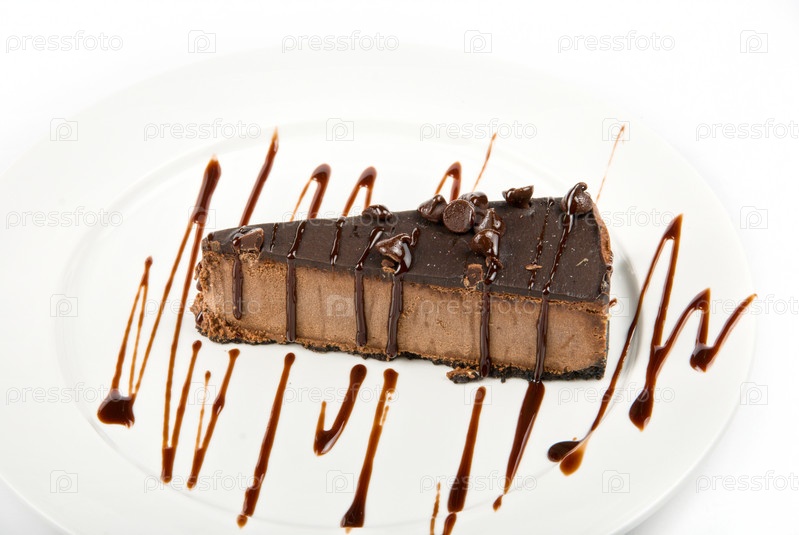 Шоколадный торт на белой тарелке