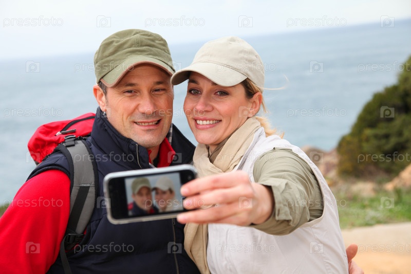 Пара туристов принимая картину о себе