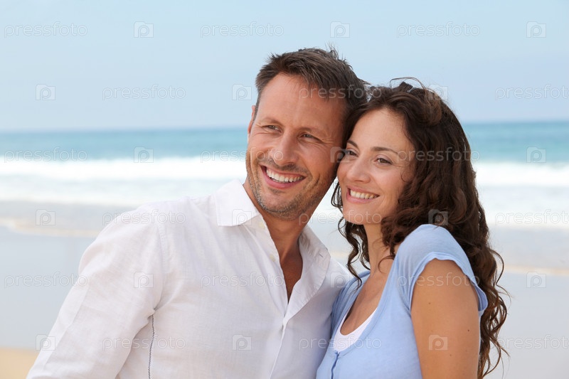 Улыбаясь пара в отпуске на пляже