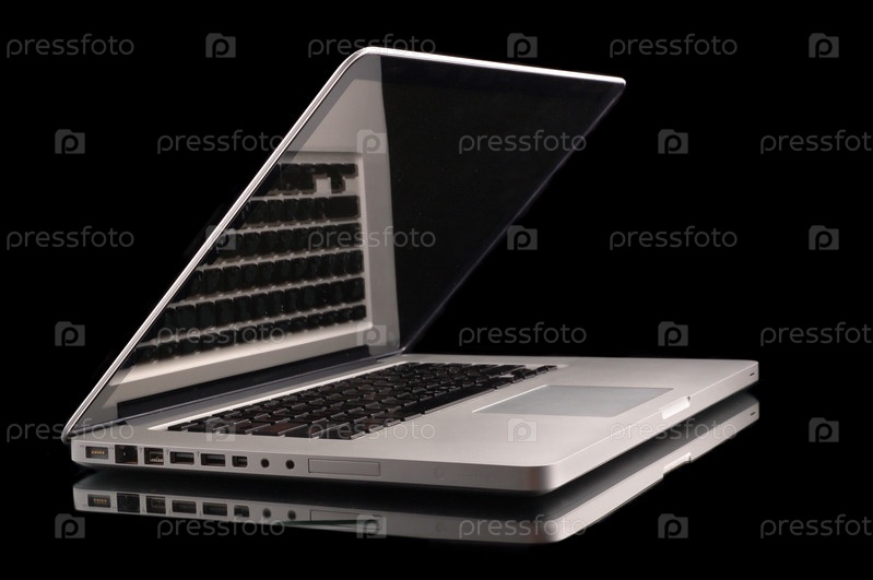 Открытый ноутбук на черном фоне
