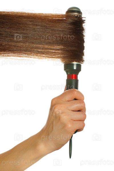 Стилизация волос с помощью круглой щетки, изолированной на белом фоне