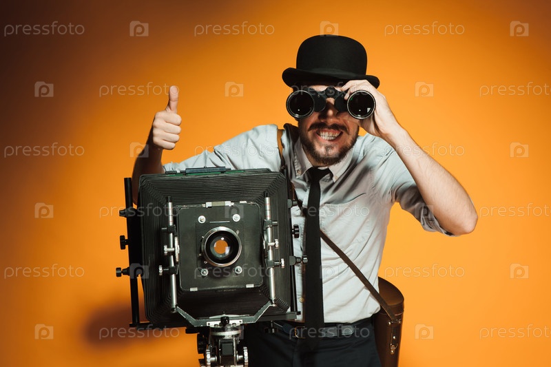 Молодой человек с ретро камеры