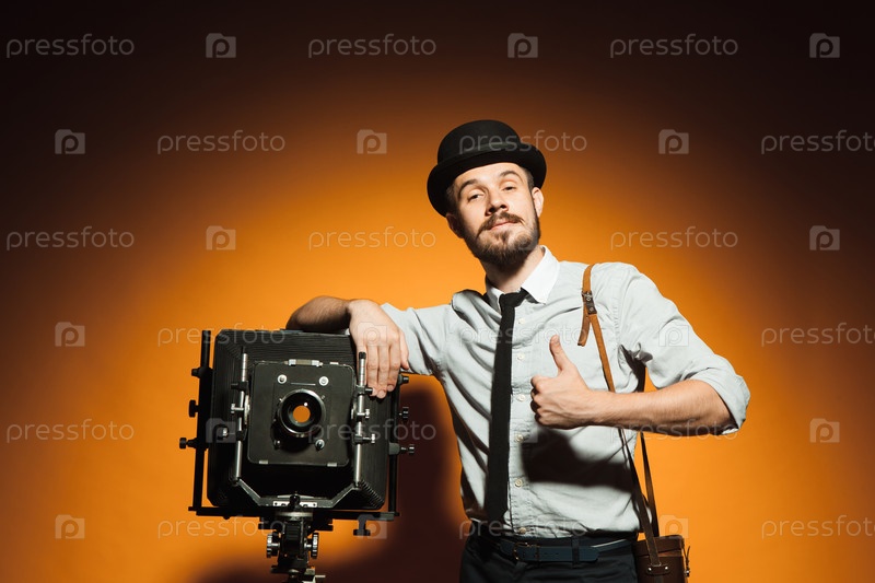 Молодой человек с ретро камеры