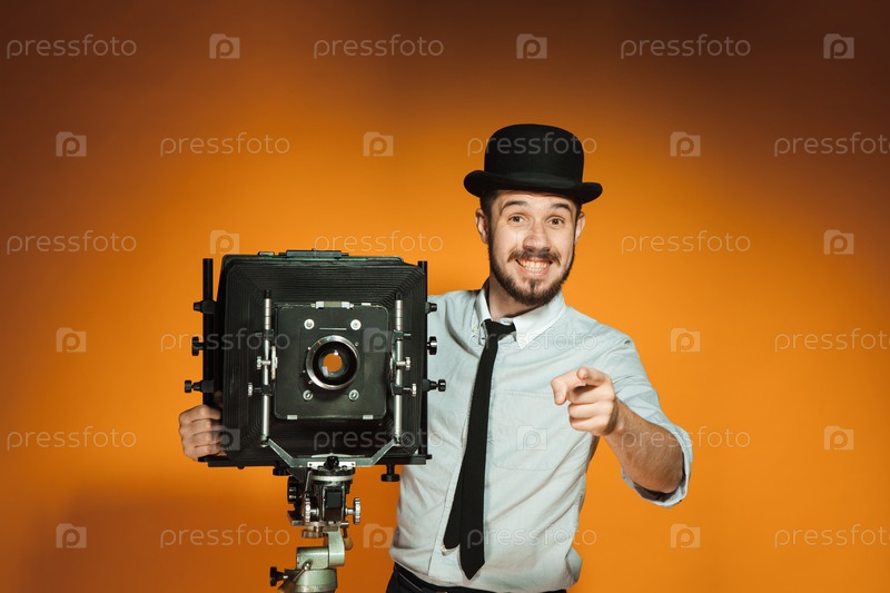 Молодой человек с ретро камеры