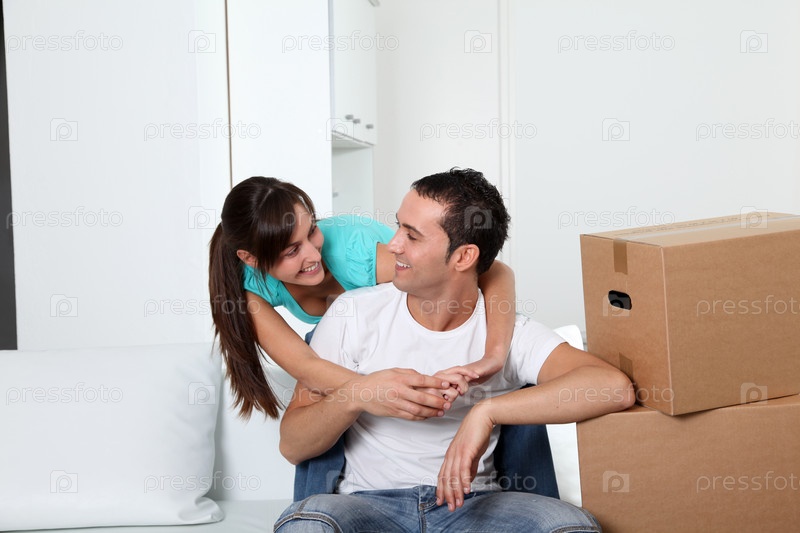 Молодая пара, переезда в новое место