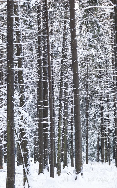 Зимний лес внедрением стволы Аннотация