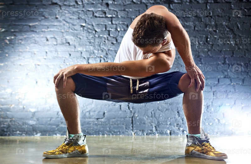 Молодой человек спортивные упражнения. На фоне стены