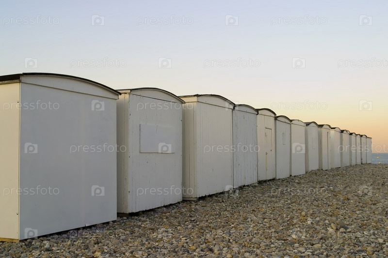 Пляж домов на берегу Гавр, Франция