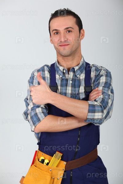 Портрет молодой плотником на белом фоне