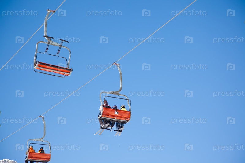 Лыжники едут в кресельная канатная дорога