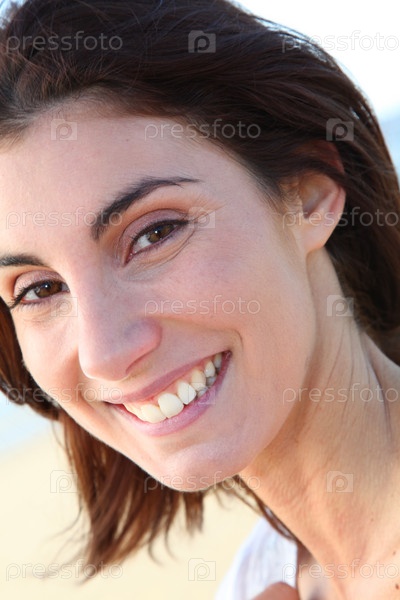 Портрет красивые улыбающиеся женщины на пляже
