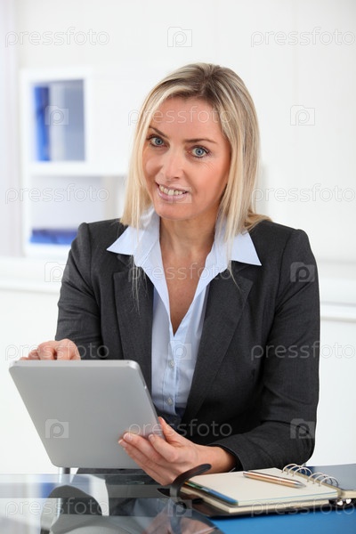 Предприниматель в офисе с Электронные таблетки