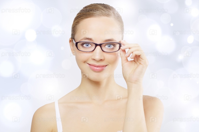 Молодая красивая девушка в очках на белом фоне