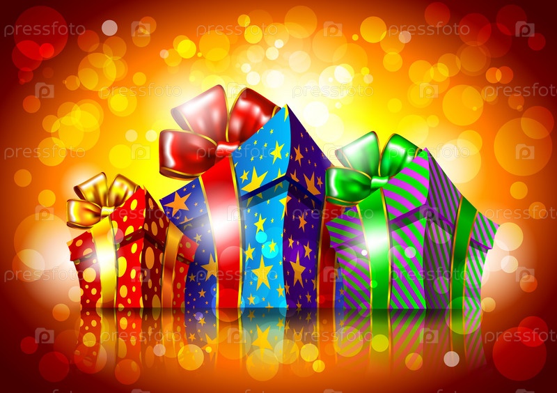 Яркие подарочные коробки на цветном фоне