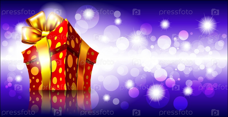 Яркая подарочная коробка на цветном фоне