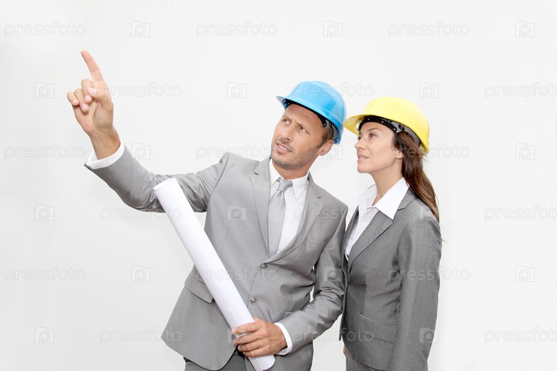 Деловых людей с шлем безопасности на белом фоне