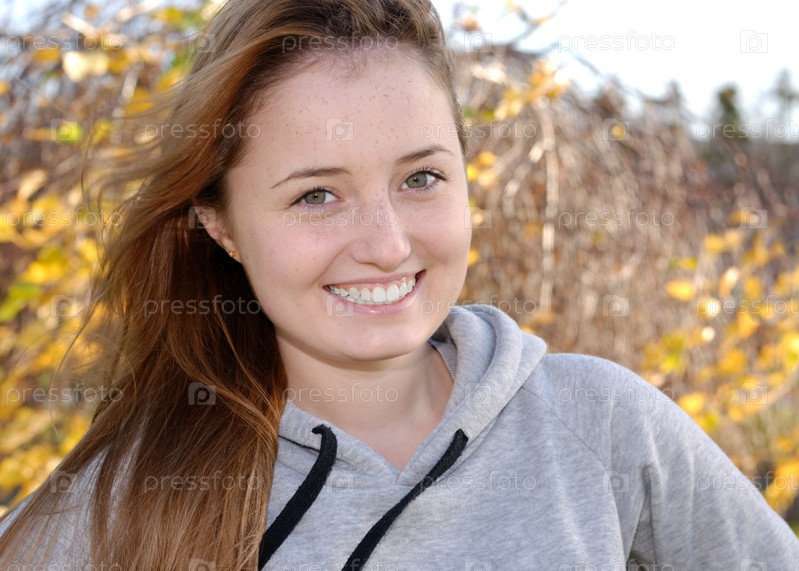 Счастливый улыбающийся девушка портрет на открытом воздухе