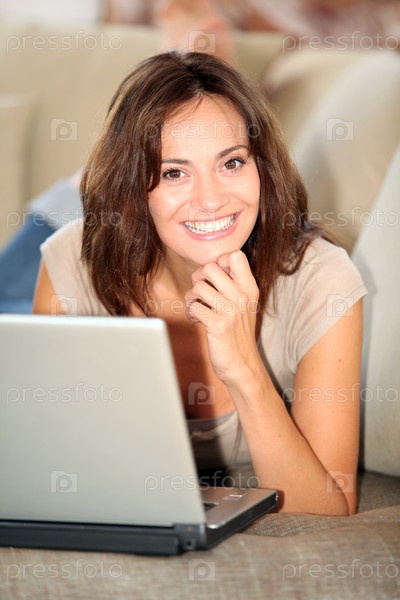 Женщина на диване с ноутбуком