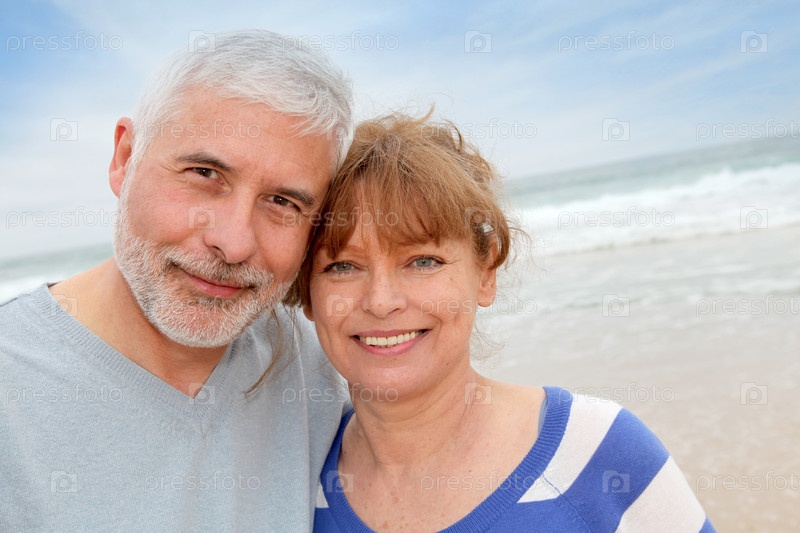 Портрет старших пара на пляже