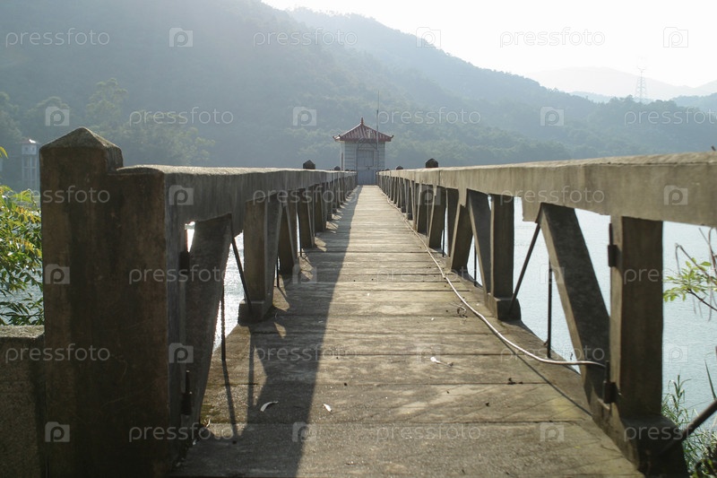 Причал протягивает над пресноводное озеро в Китае