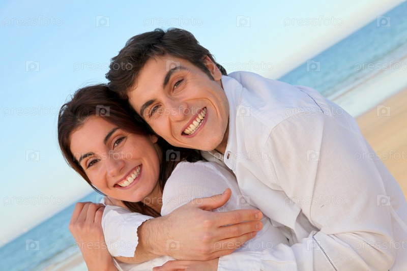 Портрет прекрасная пара на пляже летом