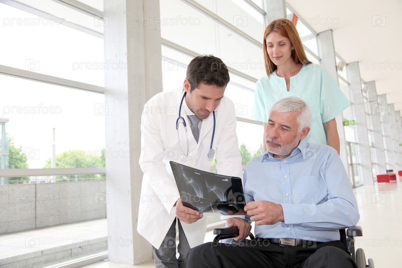 Медицинская команда Проверка рентген с пациентом