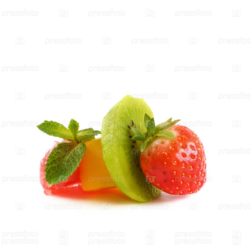 Смешанные фруктовый десерт на белом фоне
