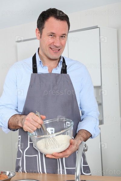 Человек, стоящий на кухне, выпечки блинов