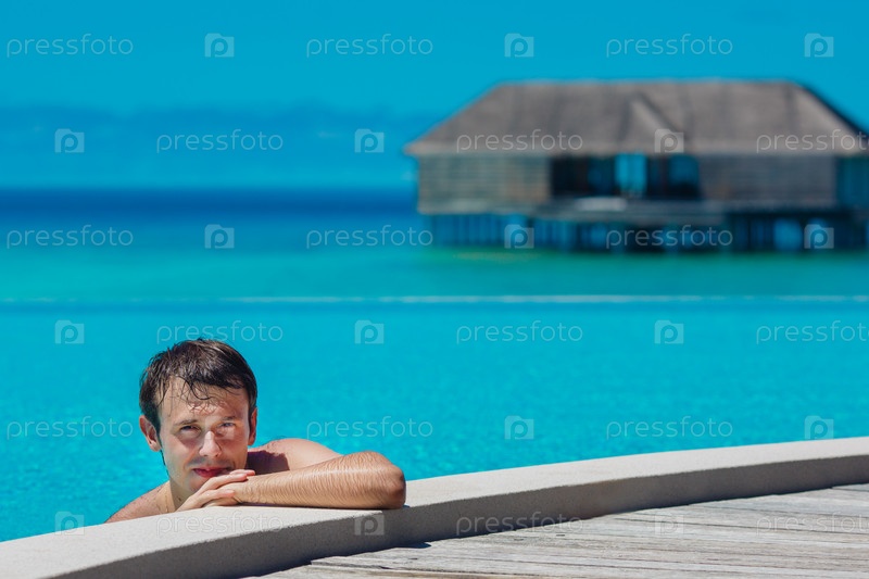 Человек расслабляющий бассейн