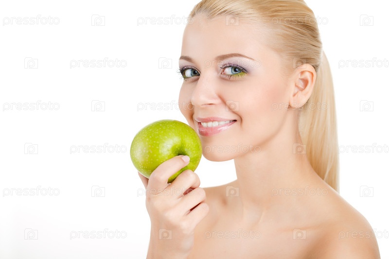 Молодая женщина с яблоками