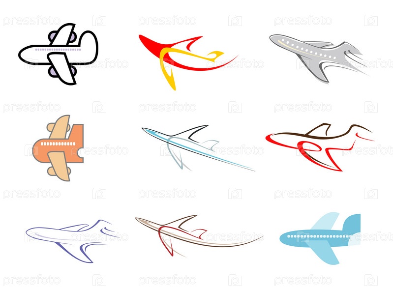 Изображения различных цветных самолетиков на белом фоне