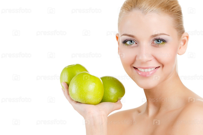 Молодая женщина с яблоками