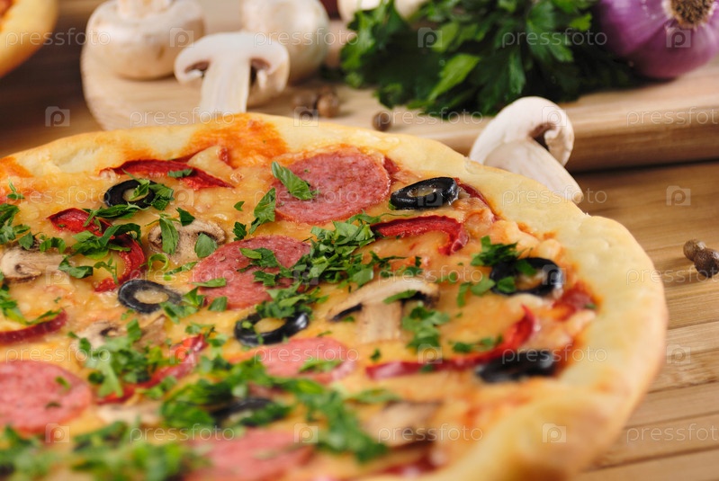 Пепперони Пицца с грибами и оливками