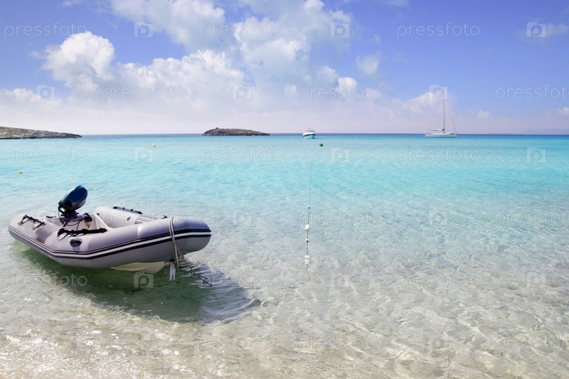 Форментер пляж лодки якорь в горизонт Балеарские острова