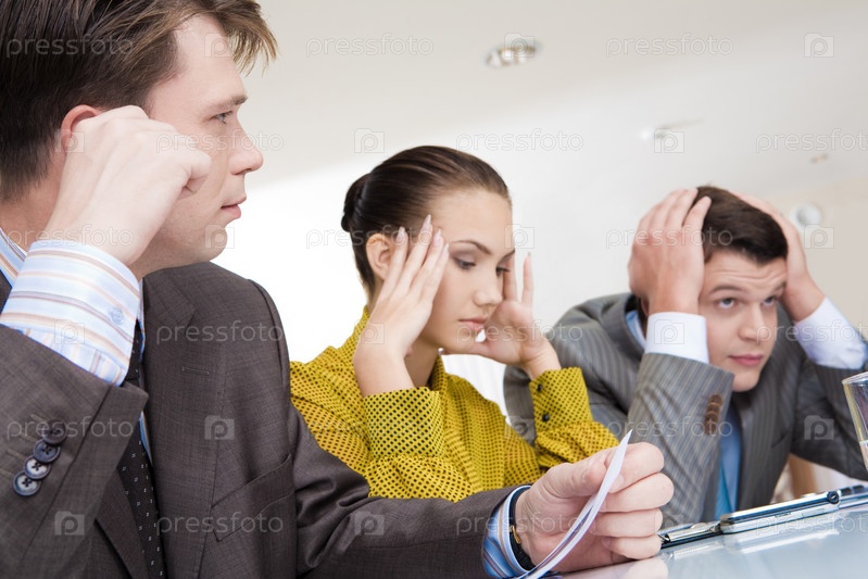 Портрет трех мыслящих деловых партнеров, присутствующих на конференции