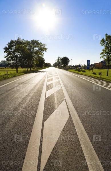 Дорога с ярким солнцем