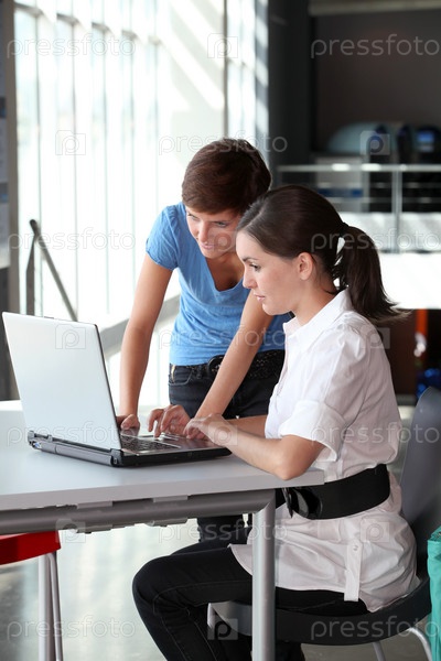 Молодые женщины, работающие на портативном компьютере