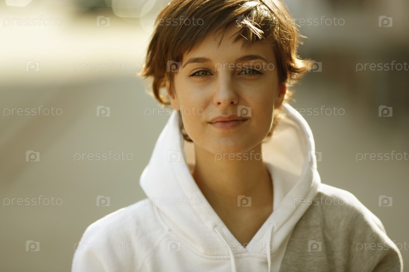 Реальные красивая девушка на улице фоне, естественный свет