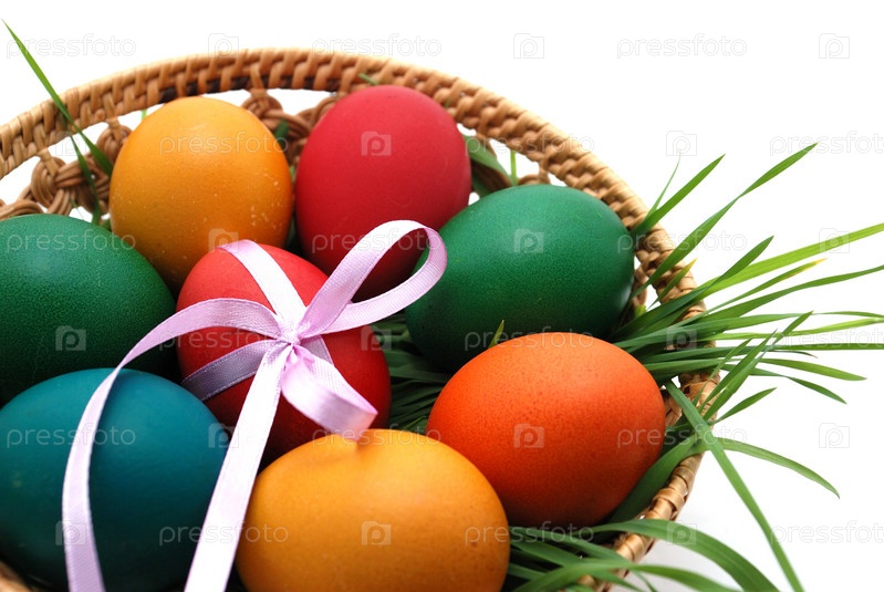 Различные цвета пасхальные яйца в корзину