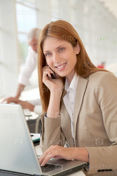 Красивые бизнесвумен, разговаривает по телефону