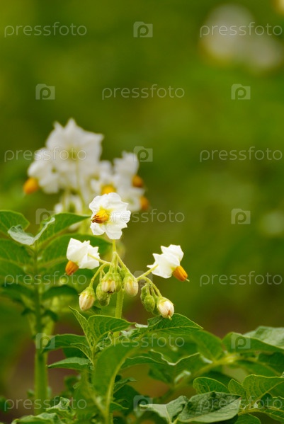 Бутон белого картофеля на зеленом фоне