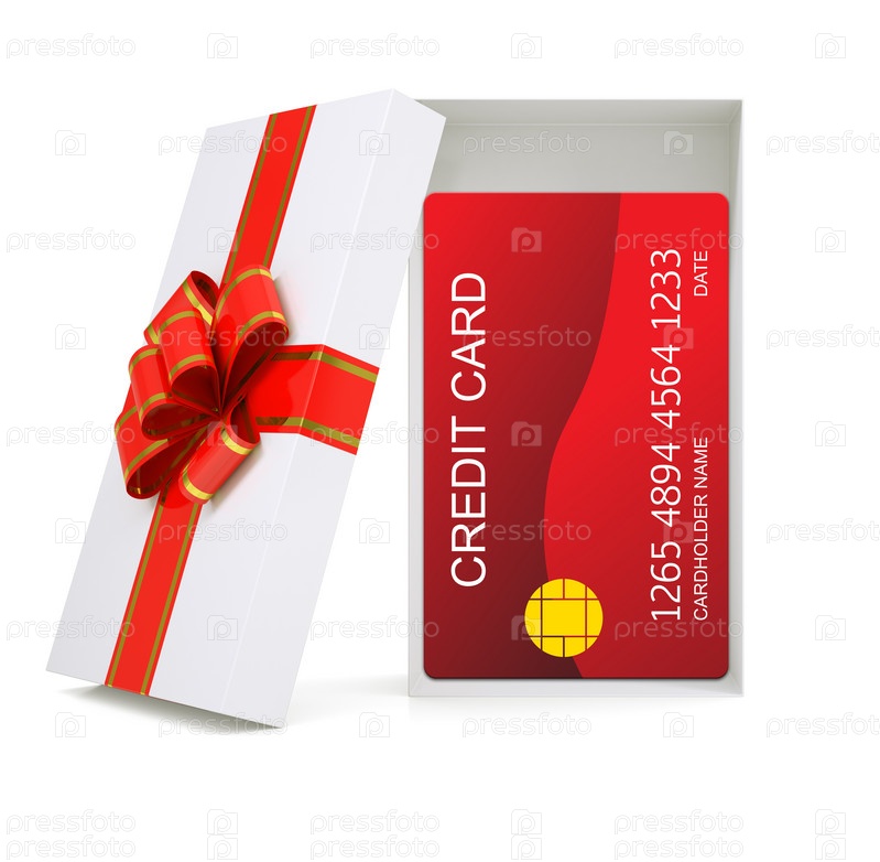 Кредитных карт в подарочной коробке на белом