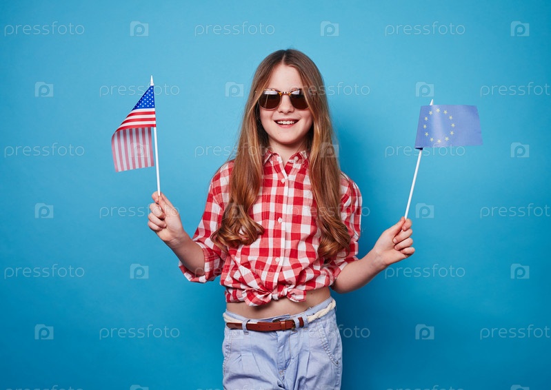 Девушка с двумя флагами