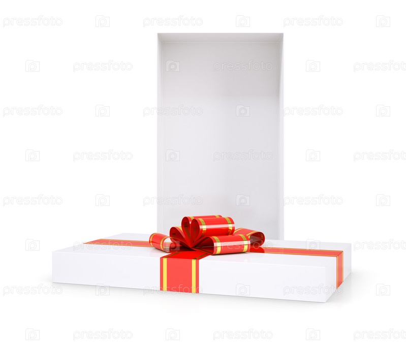 Подарочная коробка с красной лентой на белом