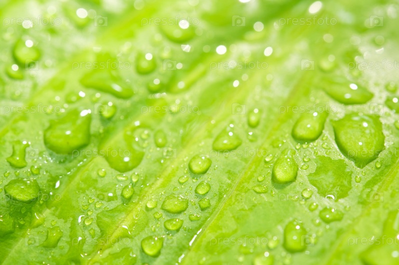 Дождевые капли на зеленом листе