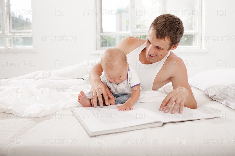 Отец и ребенок вместе чтении книги
