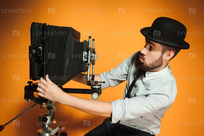 Молодой человек с ретро камеры