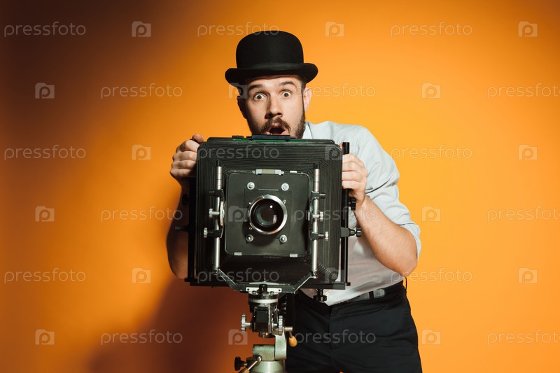 Молодой человек с ретро камеры